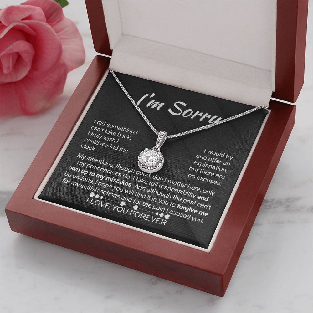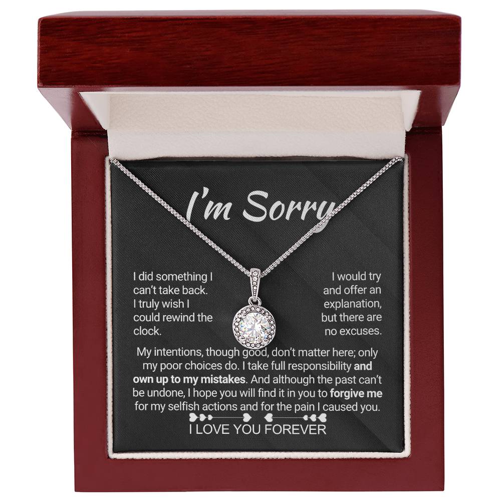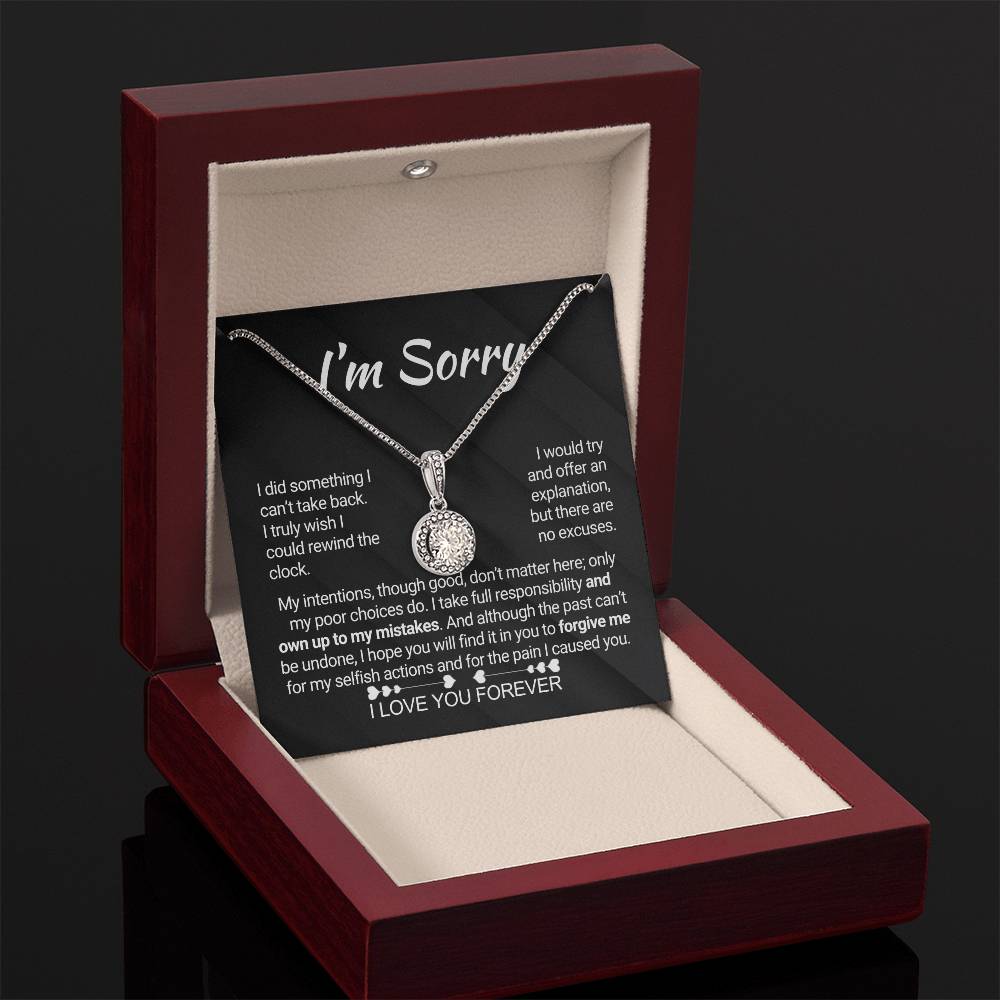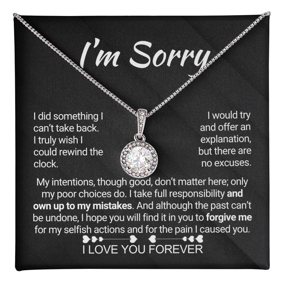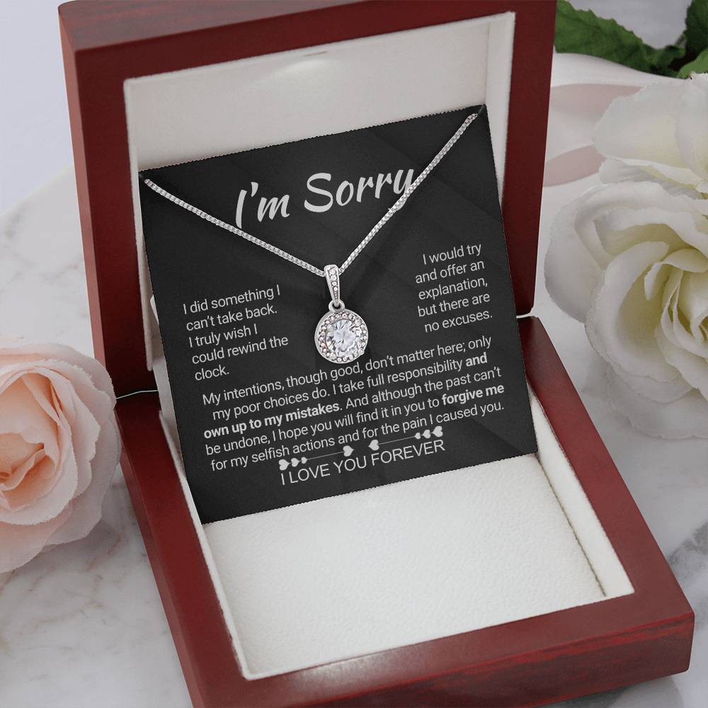 Quote On Card:  "I’m Sorry, I did something I can’t take back. I truly wish I could rewind the clock. I would try and offer an explanation, but there are no excuses. My intentions, though good, don’t matter here; only my poor choices do. I take full responsibility and own up to my mistakes. And although the past can’t be undone, I hope you will find it in you to forgive me for my selfish actions and for the pain I caused you. I Love You Forever."