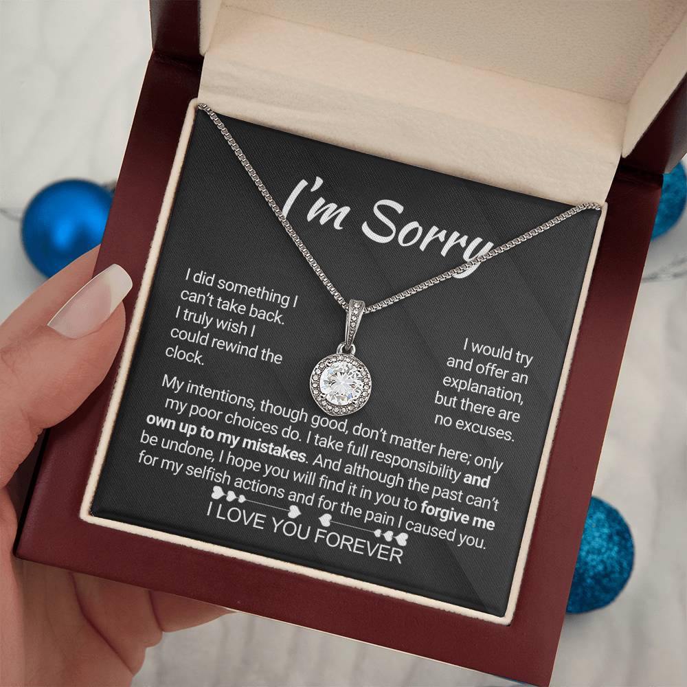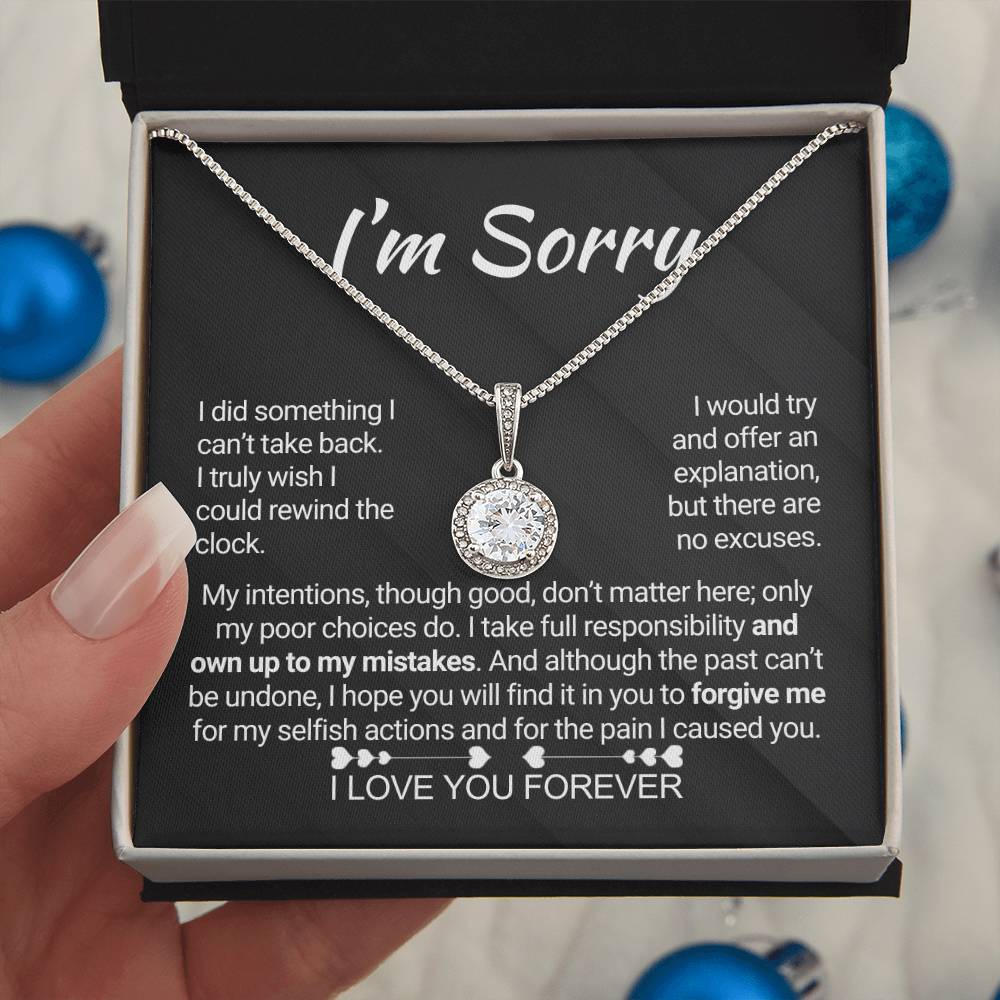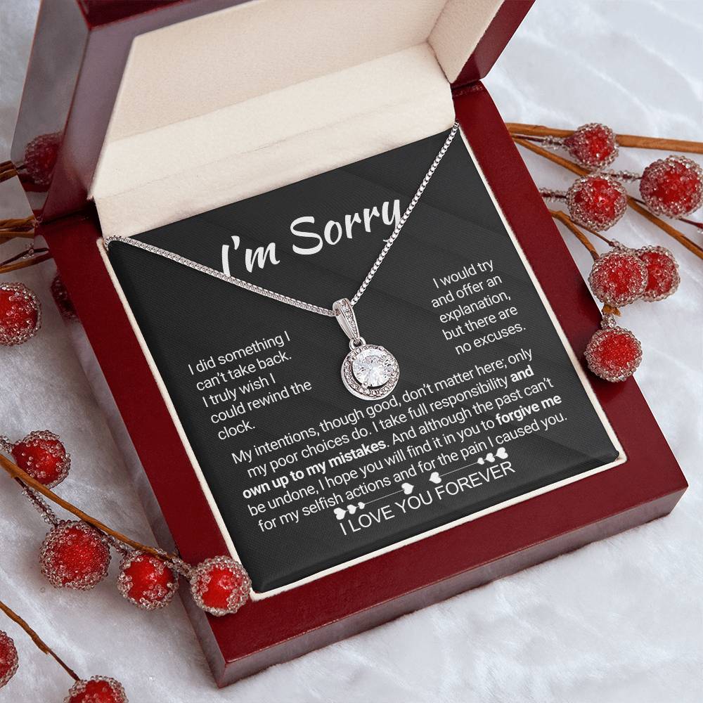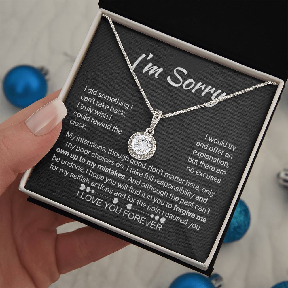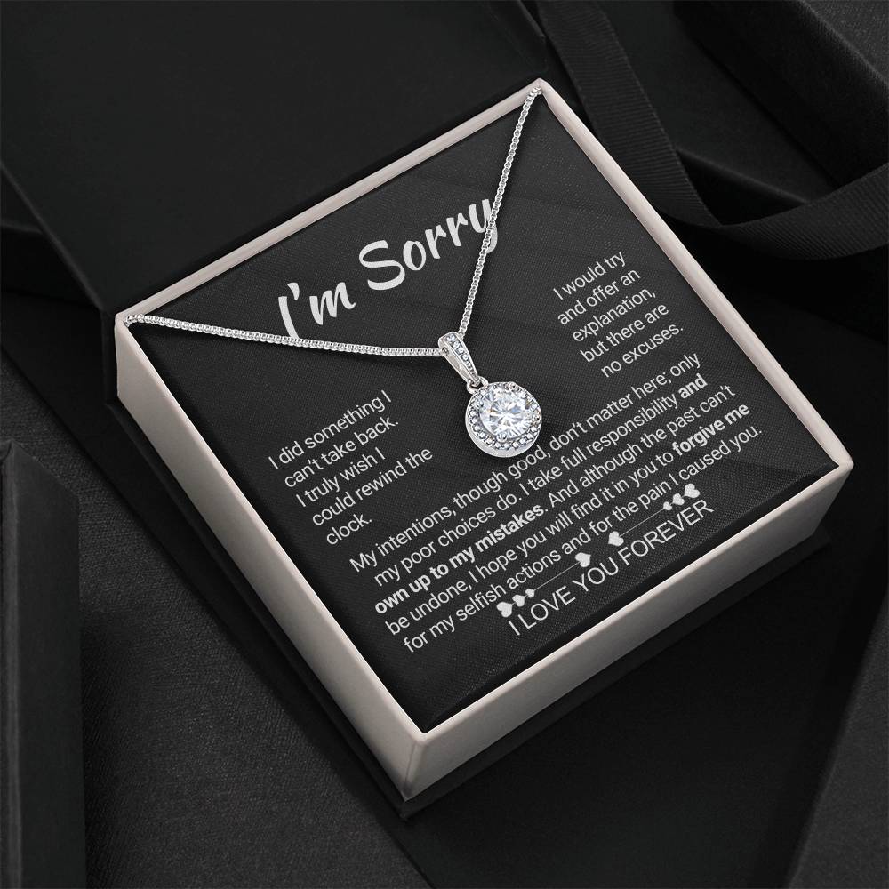 Quote On Card:  "I’m Sorry, I did something I can’t take back. I truly wish I could rewind the clock. I would try and offer an explanation, but there are no excuses. My intentions, though good, don’t matter here; only my poor choices do. I take full responsibility and own up to my mistakes. And although the past can’t be undone, I hope you will find it in you to forgive me for my selfish actions and for the pain I caused you. I Love You Forever."