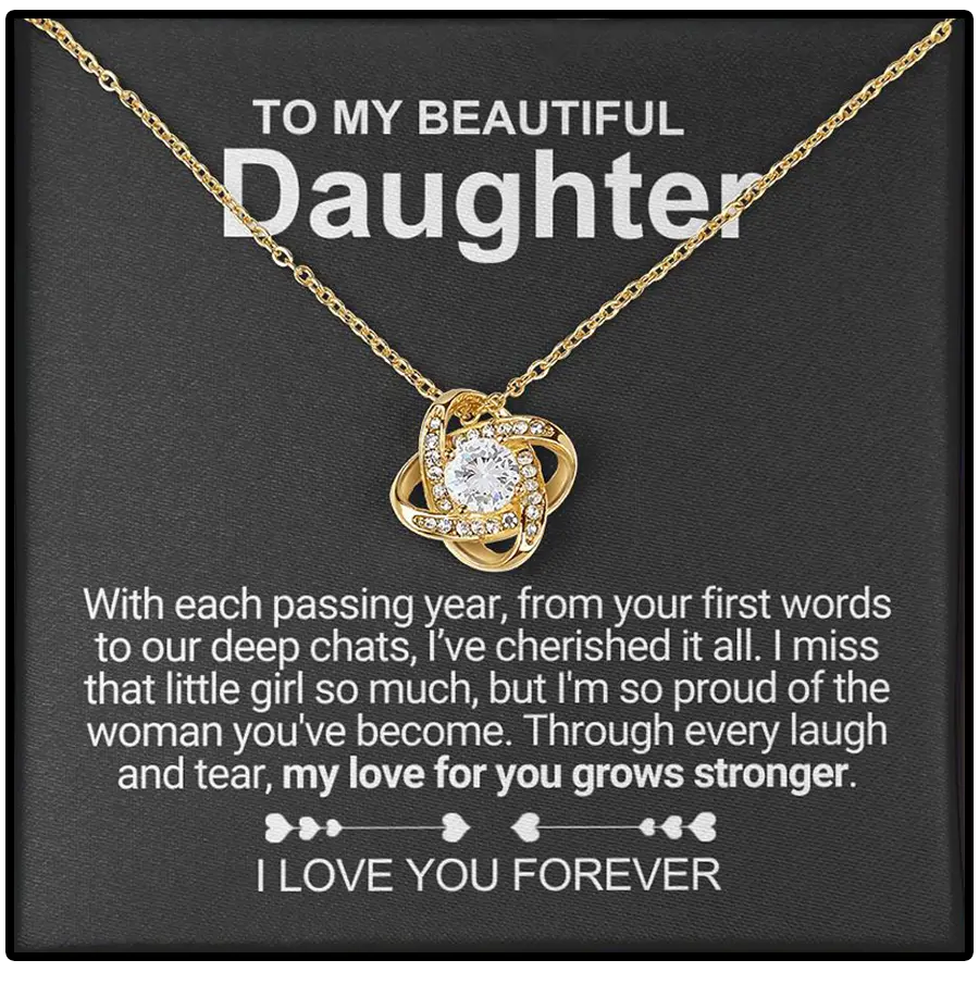 Quote On Card:  "To My Beautiful Daughter. With each passing year, from your first words to our deep chats, I’ve cherished it all. I miss that little girl so much, but I'm so proud of the woman you've become. Through every laugh and tear, my love for you grows stronger. I Love You Forever"