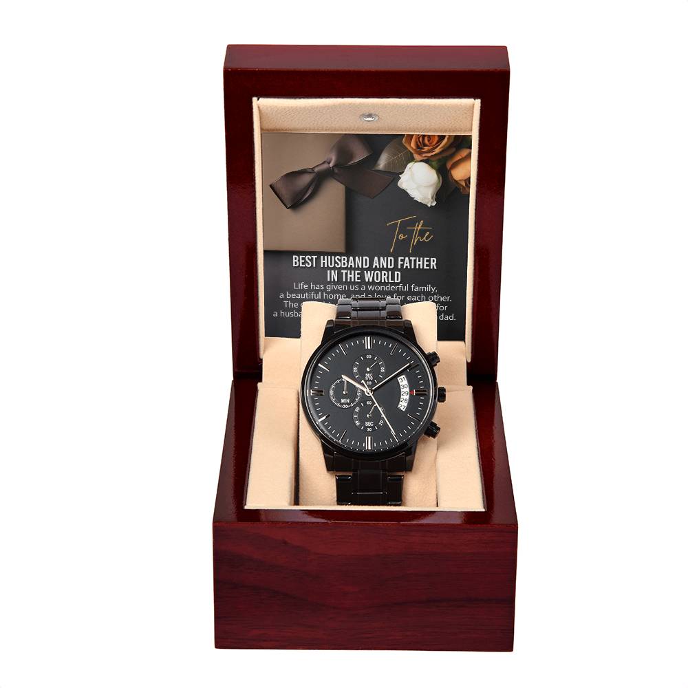Un hermoso regalo que puede soportar el uso constante, este reloj cronógrafo negro es perfecto para todos los hombres especiales en tu vida.